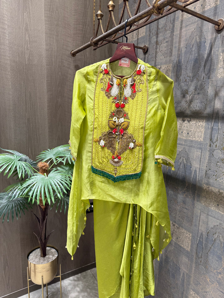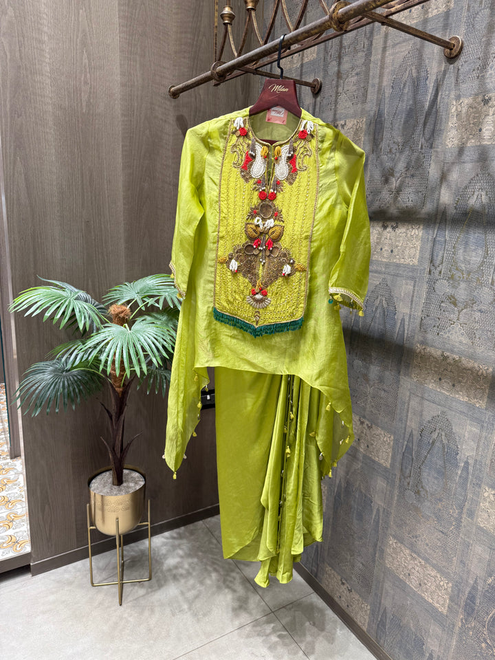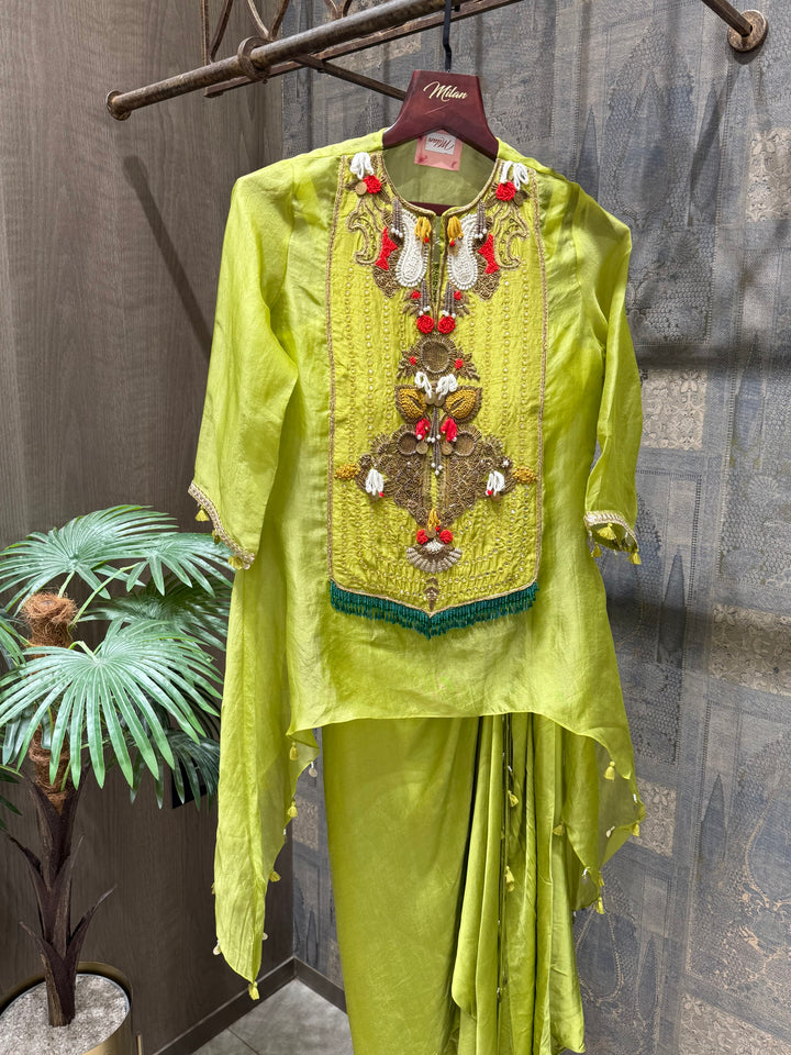 Handworked Organza Top with a Bustier and a drape skirt on Modal Silk.