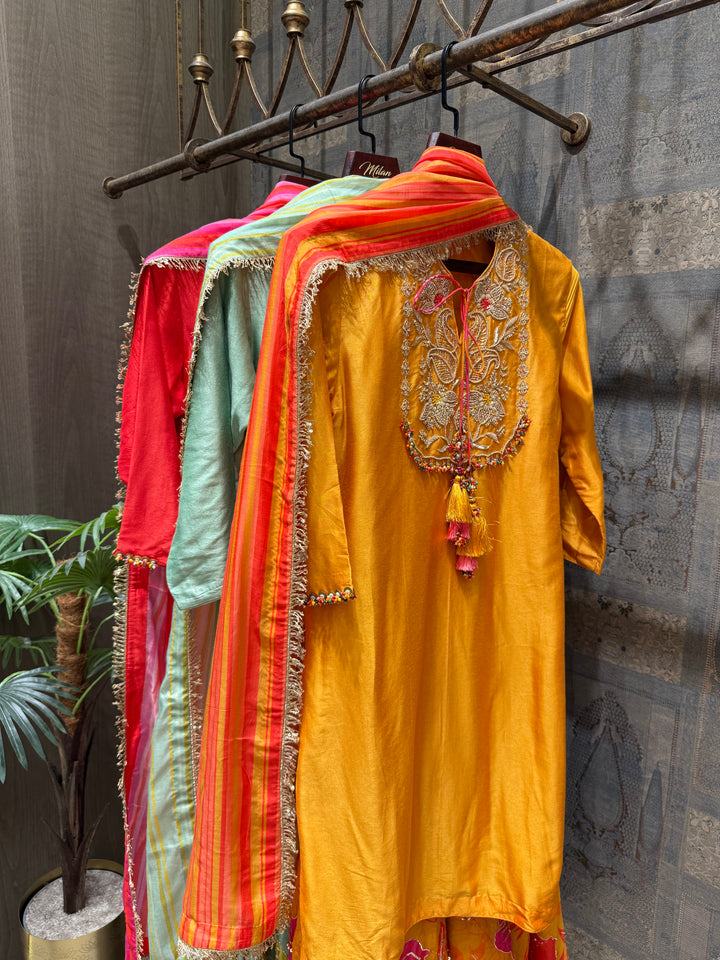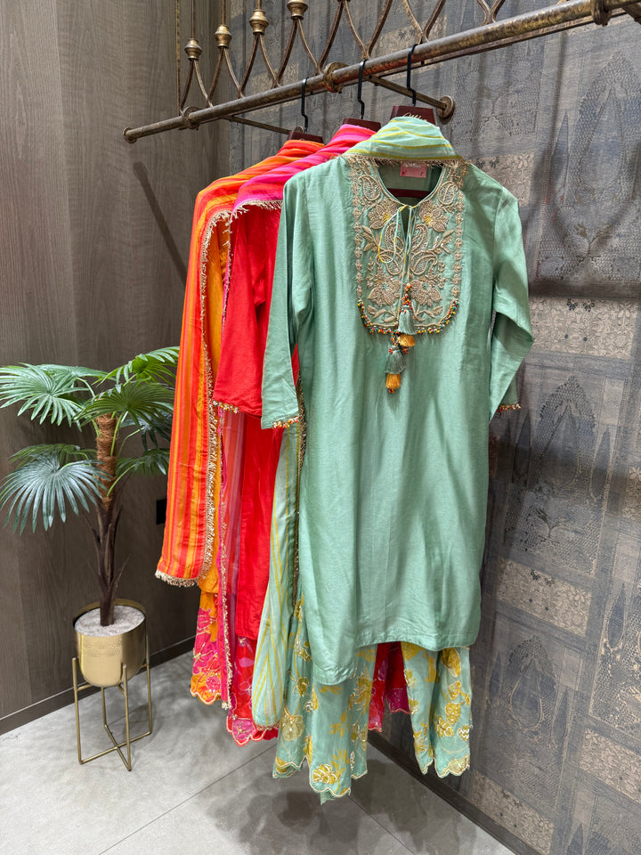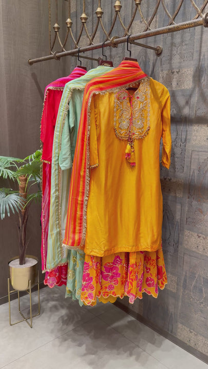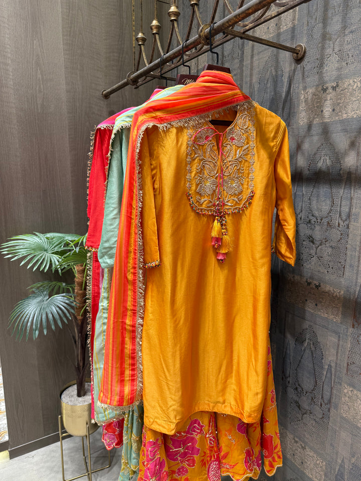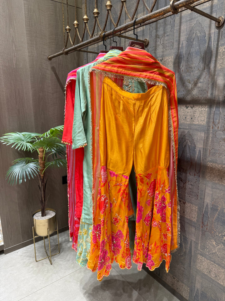 Printed Sharara paired with Handworked Kurta on Dola Silk and Printed Dupatta